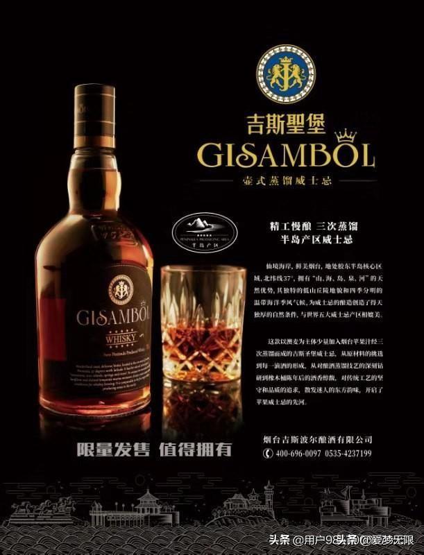 近年来国产威士忌开始崛起,烟台吉斯波尔酿酒有限公司生产的“吉斯圣堡