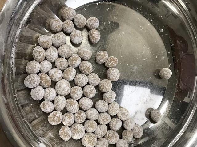 2、手搓可能没有那么圆,你搓完以后试着在珍珠表面撒上以后,在一个类似筛子的,这种平整容器里平面滚动。