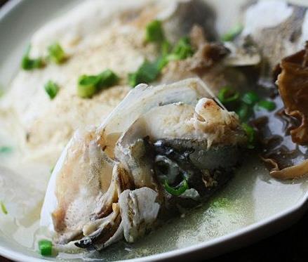 做法:1、鱼头开成两边,洗净备用,嫩豆腐切成片,用凉水泡着备用,生姜去皮切成片,香葱切成段。2、清油烧开,将鱼头放入,双面煎至微黄,倒入排骨、凉水(水盖住鱼头既可),大火将鱼头汤煮成白色,再将鱼头翻边,将豆腐放入,放盐(喜辣者可在此时放入干辣椒),再煮上3-5分钟。3、开锅后撒上胡椒粉与少量味精(不喜者可以不放),装盆后再撒上香葱即可。