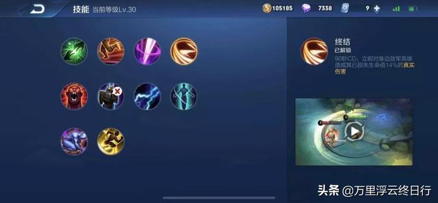 一般白起上单的时候,带的就是终结,这个时候的白起担当的不再是辅助的角色,看到人贴脸就杀。敌人血量不多的时候直接终结了更好,有些会回血的英雄比较恶心,一直打不死,没一会又恢复那么多的血量,终结是一个比较好用的技能。