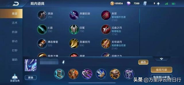 打野出装思路则是:肉刀,布甲鞋,反甲,暗影战斧,魔女斗篷和冰心。