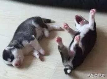 第一张,是我家狗狗还没满月时的照片,那时的它们还没有睁开眼睛,整天除了吃就是睡,即便是这样也会给你展示出它们超高的表演天赋——睡个觉还要长大嘴巴振臂高呼,你想说你就是最靓的仔仔吗?哈哈哈哈