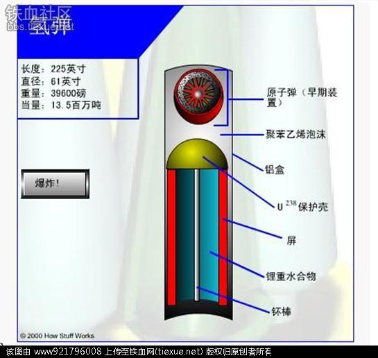▲氢弹里的原子弹是一个超级引信。原子弹制造的理论计算,只与质能守恒公式有点关系,可以说与相对论几乎没什么关系。