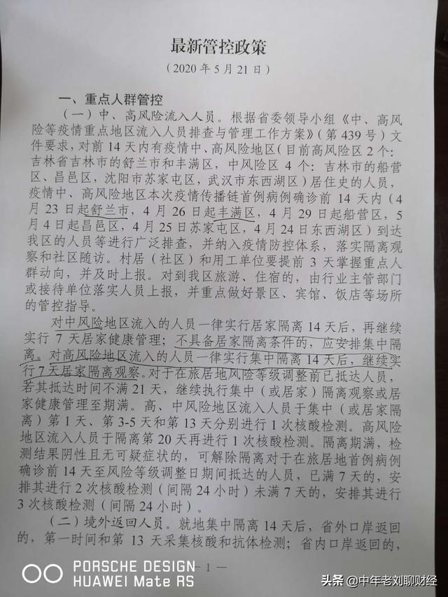 老刘现在在山东,昨天社区群里还发了5月21日最新的防控措施,但是采取隔离的仅限于高风险地区和中风险地区,并未对哈尔滨地区的来客采取隔离措施。