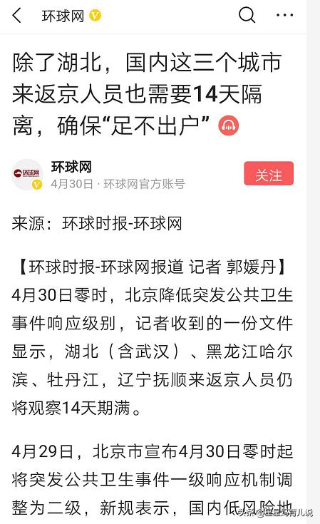 4月29日,从黑龙江哈尔滨,牡丹江,来返京的人员,需要观察14天期满。
