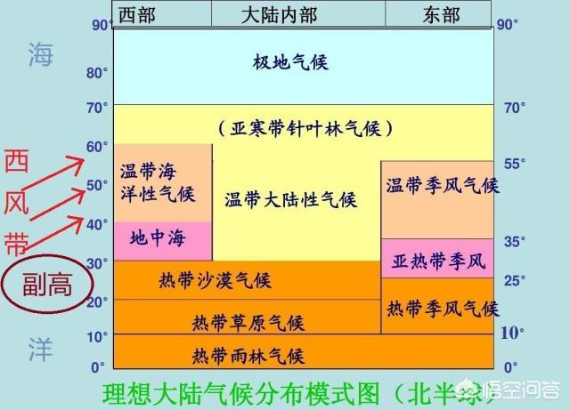 而之所以只能在大陆西岸出现,根本原因在于两种气候类型都受到盛行西风带的控制。
