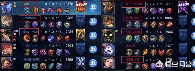 仔细看一下他们的对手:对面有四个主播,其中有三个是虎牙的主播,估计孤影的露娜在ban选阶段就被直接禁掉。这场比赛加上自家队伍里的小潮,这局巅峰赛一共出场了7个主播,这局比赛的含金量还是挺高的。虽然挺可惜剑仙没拿到MVP,但相比于MVP,恐怕打出全队输出32%的剑仙更希望一场胜利来提升自己的积分。