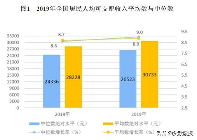 根据国家统计局统计的相关数据显示,2019年全国居民人均可支配收入为30733元,居民人均可支配收入中位数为26523元。