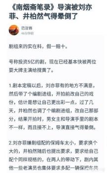 笔者估计这是剧组的另类炒作,因为《南烟斋笔录》的拍摄,虽然有刘亦菲加盟主演,但是依旧宣传的力度不够强劲,而且从拍摄到现在,新闻不多,花絮也不多,根本没形成一个强大的宣传态势,这个对后期的收视恐有巨大影响。