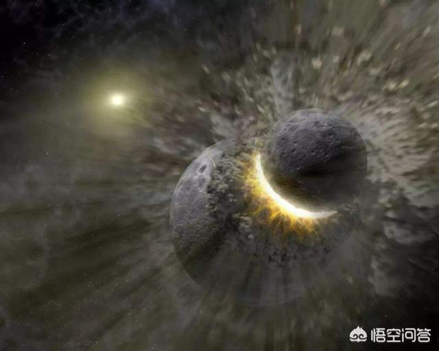 由于引力的作用,忒亚撞上了地球,导致忒亚解体,其中一部分物质留在地球上,而另一部分物质飘到了太空中,由于地球的引力这些物质没有跑太远,而是在地球周围形成了类似于土星环的存在,这些物质又逐渐在引力作用下坍塌成月球。
