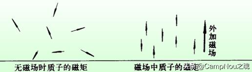 两种能态的能量用ΔE表示,有公式ΔE=2μB0表示。μ是自旋核的磁矩,B0是外加磁感应强度。如下图