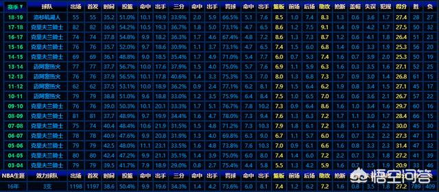我们来看看詹姆斯职业生涯16载的场均数据情况: