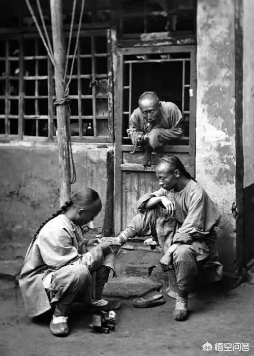 “艺术来源于生活但高于生活”这句话在历史剧领域往往会被制作方发挥到极致。不往远处说,我们就拿离我们最近的描写清代的历史剧讲,在服化道方面,同真实的老照片相比,我们都会发现不符合史实的地方。比如男人的辫子,清代男人会把头前部一多半的毛发剃光,只留后脑勺一少半的毛发,梳成辫子。随着年纪增长,头发越来越少,最后会只剩下一根短短的像老鼠尾巴一样的东西。嗯,通过照片,大家感受一下: