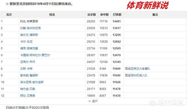 詹姆斯生涯打铁数11640次,科比、乔丹有多少次?谁的命中率最高?