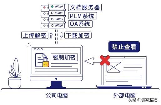 对于企业搭建的私有云平台,企业可以在云服务器上部署赛虎信息桌面管理系统,对访问云服务器的行为进行严密管控,保障云服务器的访问安全,结合加密管控,可以对从云服务器下载的文档自动加密,保证云端的机密资料不被外泄。