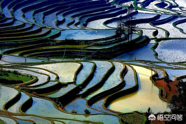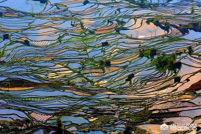 梯田最大的有数亩,最小的仅有簸箕大,往往一个山坡就有成千上万亩,是哈尼族人雕刻的田园山水风光。