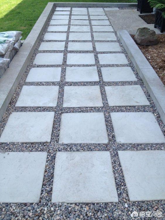 水泥浇成水泥块后,像一块块铺地上,中间留出5公分左右的缝隙撒上碎石子。