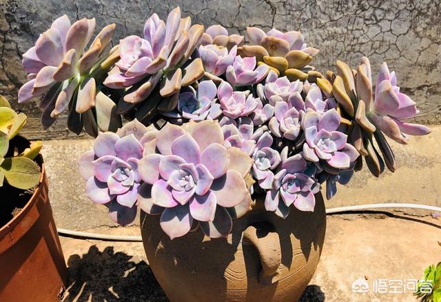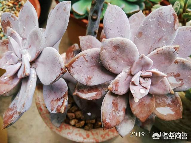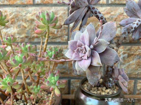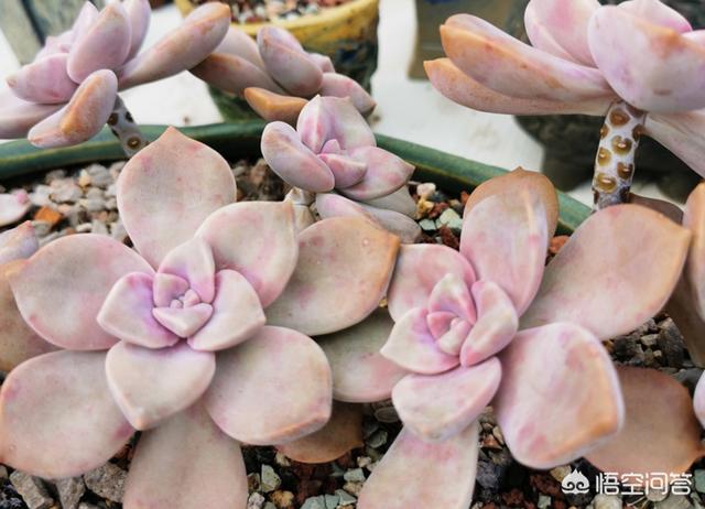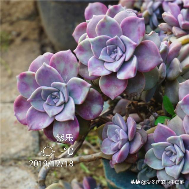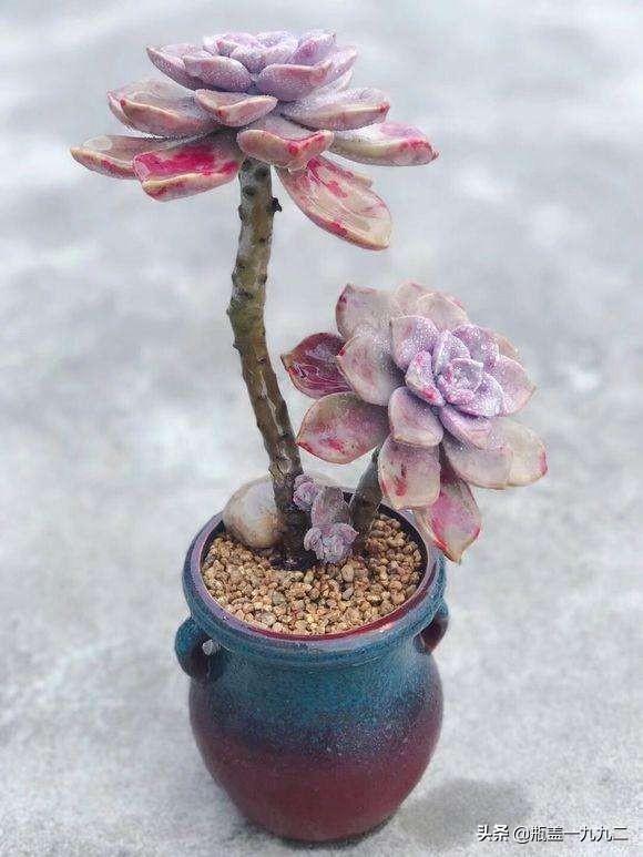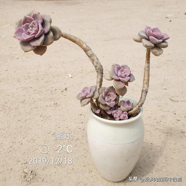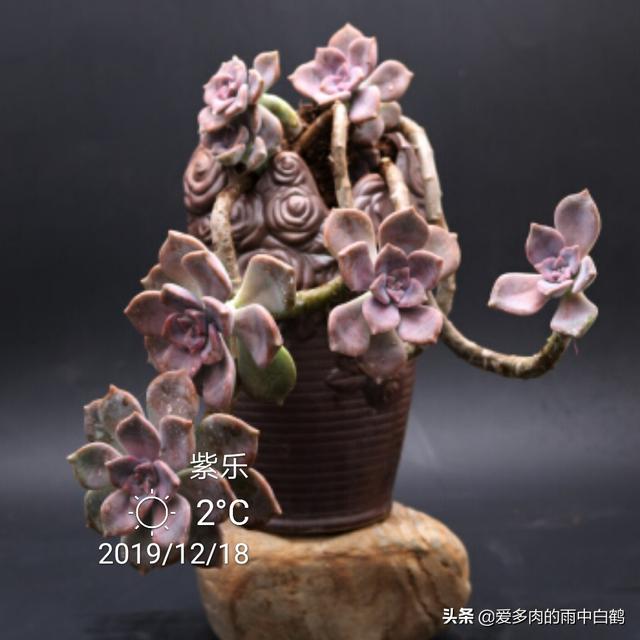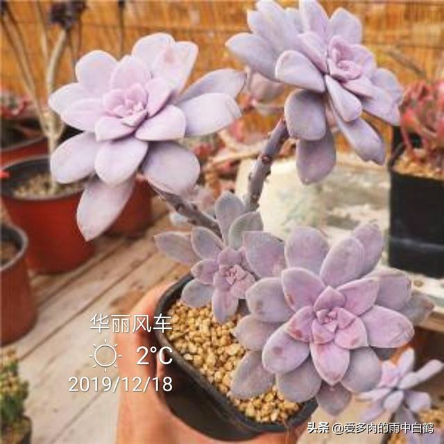 紫乐和华丽风车在养护上并没有什么不同,它们都算小型多肉品种,所以会长出较长的茎秆,建议题主栽种时使用有一定高度的花盆,这样搭配出来会更好看!而为了避免它们出现过度的徒长,配土颗粒比例也需要高一点,成株的话颗粒比例起码要达到70%才行,如果是老桩,则建议将颗粒比例提高至90%以上,甚至直接用全颗粒加一成蛭石颗粒来控养也是可以的。