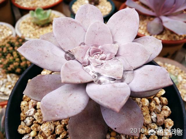 紫乐有莲座,叶尖厚,叶根薄,有少许粉。