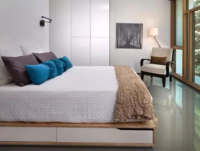 可以增加几寸空间对于小卧房来说是很重要的!必须舍弃踏板式床架,建议可以选择造型比较简单现代化床头设计的床架。或是可以选择底部支撑是脚架的,避免挑选床架周边是有延伸性造型的。此外,可以利用艺术品点缀在床的上方或是床头处。