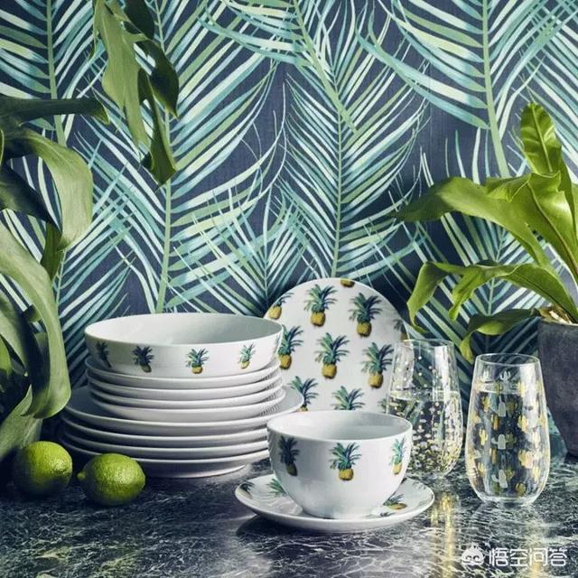 热带雨林中茂密潮湿的大叶植物本身就带着一种清新宁静的特质,餐具印上植物和水果的图案,打造属于自己的植物园。▼