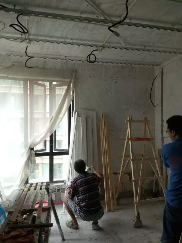 ▲等石膏板封好之后,还得对拼接处做防裂措施,接着就是油漆工最后进行钉眼防锈处理、批嵌打磨、上涂料了。因为有的房间有管道限制了吊顶的高度,很多时候电器需要换位置安装,电器的位置需要提前和工人协商位置,以免安装时出现问题还要退换货。吊顶的测量要在地砖和墙砖贴完之3天之后上门测量,毛坯墙测量尺寸会有误差,墙、地砖贴完之后不能马上上人否则会有空鼓现象产生。