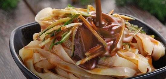 山西的面皮不同于陕西,要拌上麻酱吃才香!对于山西人来说不拌麻酱不正宗~