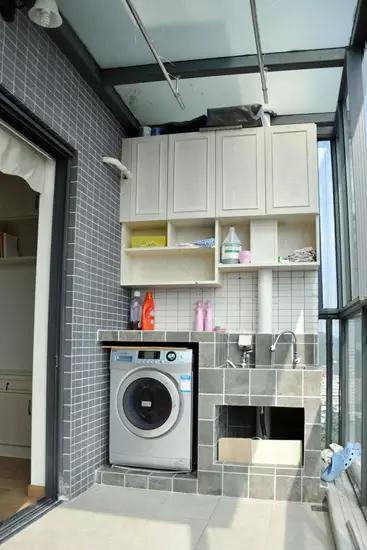 如果阳台刚好摆得下洗衣机,那么就可以降洗衣和晾衣的过程全部在阳台中解决,一方面能够减少来回于卫生间和阳台之间的时间,一方面也降低了晾衣过程的体力消耗,同时节约了卫生间的空间。