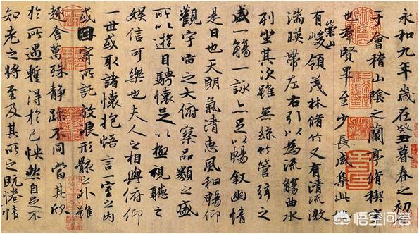 历史上最著名的一次“曲水流觞”活动,要算东晋穆帝永和九年(公元353年)三月初三,王羲之与谢安等友人在会稽举行兰亭之会了。王羲之挥毫作序,成就了书文俱佳、被后人赞誉为“天下第一行书”的《兰亭集序》。