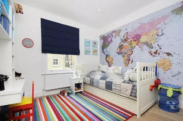 ▼ 彩色的地图非常适合用在儿童房,不但色彩鲜艳有趣,还能寓教于乐。