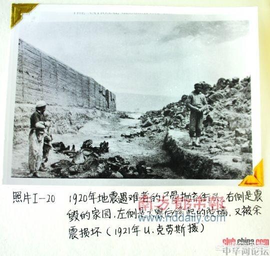 北洋政府无暇顾及,甘肃籍人士在京呼吁救援无望,生命在企盼的呻吟中死去:面对巨大的自然灾害带来的心灵和肉体的痛苦最需要快速、有效的援助来抚摸创伤,安慰民心。据《固原县志》记载:“民国九年庚申冬月初七(1920年12月16日),固原发生地震,奇事罔闻,灾浩情惨,全县瓦解,伤亡过重。灾后顿呈荒凉,满目苍痍,山川导向,四野惨淡,所有震损建筑物,百年难复原状。欲望旧观,诚又不再之祸。胡劫之浩一至于此极,顷刻之间伤人数万,死在梦中,损物无数化为乌有。”而位于固原以西北90公里的极震区的海原县震后惨状可想而知,据说当时游历在外的海原人得知地震消息后赶回家中探望,竟然不识自己生活多年的家乡,原来的村庄以荡然无存,记忆中的山川以面目全非。若干年后人们在修建房屋时,偶然挖出了埋于地下的地震遗迹,竟然发现一个半壁窑洞里残留的几具白骨,窑洞的土质墙壁上赫然显示一道道用手抠抓的带血沟痕!可以想象他们在强烈的求生欲望驱使下,做出怎样的自救努力!他们的内心经历了怎样的炼狱般的痛苦!但他们最终未能逃出死神的呼唤!由于当时国家正处于军阀混战,政局动荡、社会黑暗时期,北洋政府根本无暇、无力顾及灾区民生,致使无数流离失所的幸存灾民在严寒、病饿中死去!在无援无助中闭上无奈的双眼!1921年的《地学杂志》上曾发表《陕甘地震纪略》一文,文章写到:“无衣、无食、无住,流离惨状,目不忍睹,耳不忍闻;灾民多以火炕取暖,衣被素薄,一日失所,复置严寒大风,忍冻忍饥,瑟瑟露宿,匍匐扶伤,哭声遍野,不等饿殆,亦将僵毙。牲畜死亡散失,狼狗亦群出吃人……”北洋政府救灾不作为的冷漠态度,引起当时在北京工作的甘肃籍人士的极度愤慨,他们一再呼吁,强烈要求政府救济灾民,1921年2月24日,即地震后70天,甘肃旅京人士在《中国民报》上发表文章:“甘肃为国家征出租税之地方,甘肃人民即为国家负担义务之分子,会遭此亘古以来未有之浩劫,竟不能并顾兼筹之余惠……”最终社会各界筹得区区3万大洋救灾款,而3万大洋的救灾款是否完整地用于灾区还要画上一个问号?
