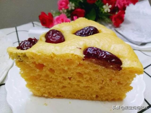 分享一款非常简单又好吃的红枣玉米发糕的家常做法: