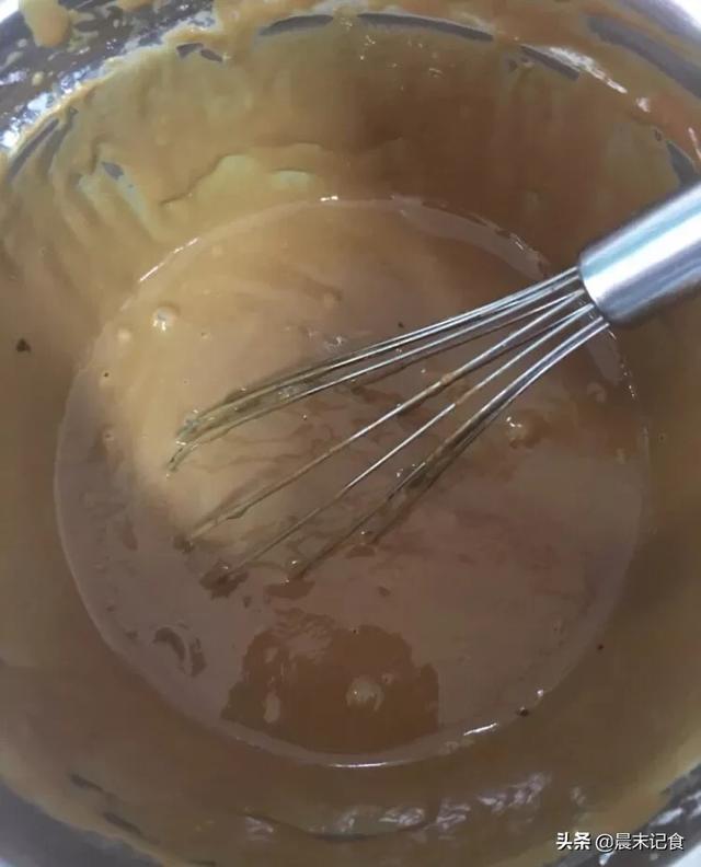 步骤三:用打蛋器把面粉搅拌成无颗粒的浓稠面糊。