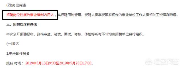 3.公告最后关于聘用待遇描述中,有类似“实习期满后考核通过办理入编手续”这样描述的,那就是实习期间内不给入编,实习期后给入编。