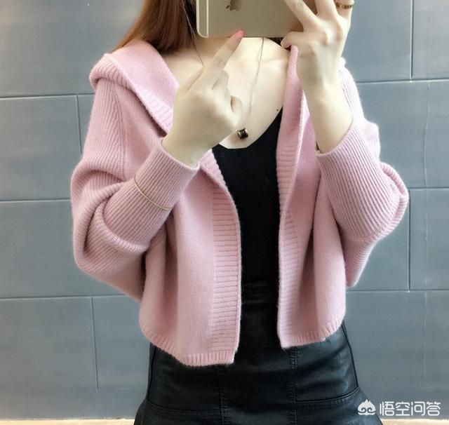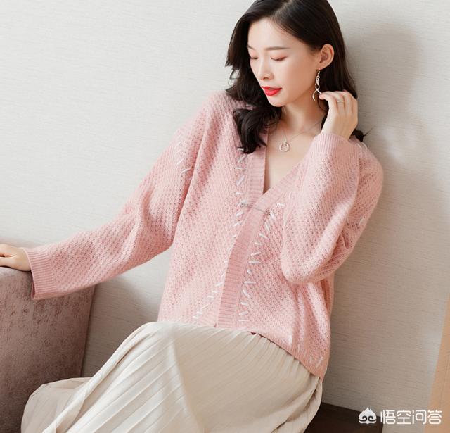 粉红色短款开衫毛衣外套怎么搭配比较好看?