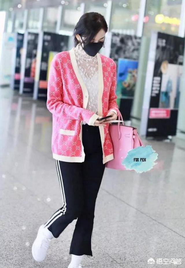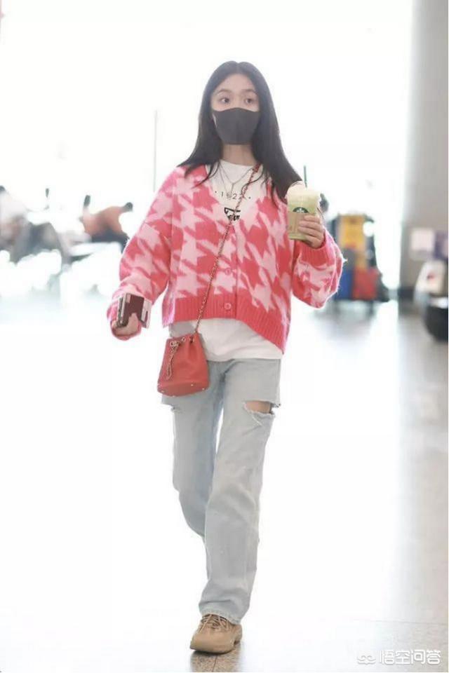 比如上图粉色千鸟格开衫外套,里面的白T+牛仔就导向了休闲,而运动鞋导向运动感,所以开衫原本是体现温柔精致的单品与休闲运动两种风格的混搭,不会让开衫有甜腻感,反而时尚感更强。粉嫩清爽的打扮使得她少女感元气十足,但是又有个性。