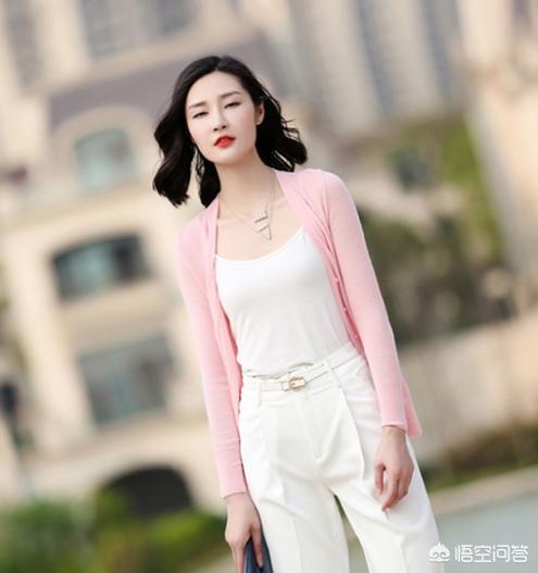 粉色短款针织开衫非常百搭,搭配一件白色吊带,再搭配一条白色半身裙非常显气质,非常熟女的装扮,适合萌妹纸尝试。