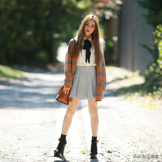 二:个子小不建议穿膝盖左右的百褶裙显腿短,还显胖。可以穿修身小a字群,显个高腿长。