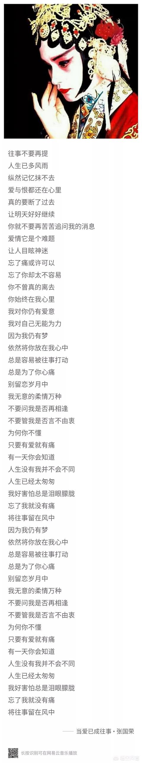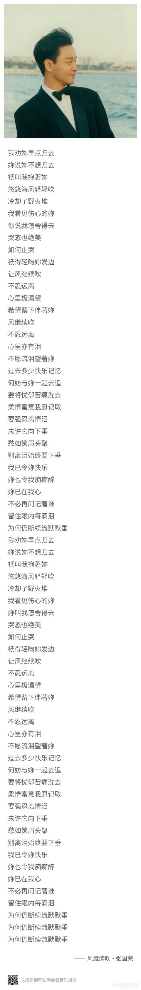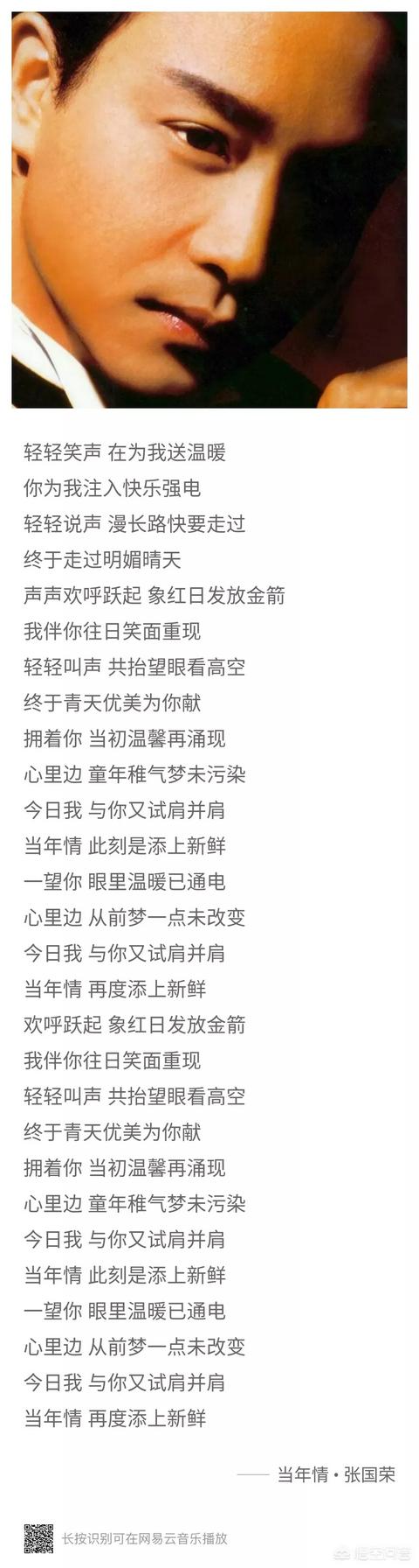张国荣是歌坛的传奇,至今让人为之留恋,其脍炙人口的歌词绝不止这些,他离开我们已经很久,但是传奇还在延续。