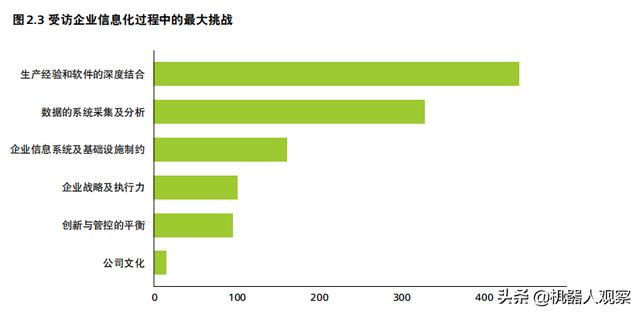 我们来看2015年,德勤的报告中提到的,制造业企业自己表示在信息化过程中的困难点,其实就集中在软件同自身生产的不相容。这种不相容可能来自于企业本身不重视,或者受到生产以及管理人员的知识水平的限制,还有客户本身的生产能力达不到等问题。