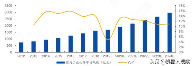 如果从制造业市场的信息化容量来说,我们大致可以通过工业软件的容量和发展趋势来进行一定程度的反馈: