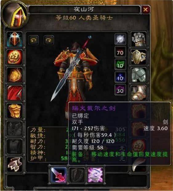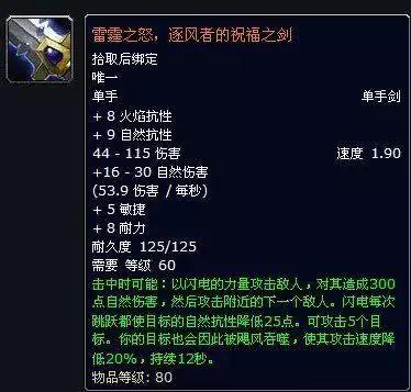 瑞文戴尔之剑提供了大量的移动速度和生命回复速度,曾经不知道多少人为了这把武器而去刷副本。拿起这把武器在配上瑞文戴尔男爵掉落的DK马,简直不要太帅了。虽然后来许多人为了刷DK马都不知道顺手暴了多少把瑞文戴尔之剑了,但对于怀旧服来说,这把剑的爆率依旧低的恐怖。哪怕这把剑的属性跟不上时代了,但那拉风的外形依然是站街的首选。