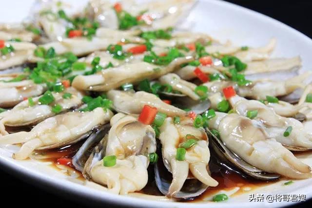 2.蛏子 壳薄肉厚是海鲜中一种异类,通常我们会把它盐焗或是葱油。我们就做个葱油的,将洗干净的蛏子倒入锅中加料酒、生姜、葱白段一起烧,等蛏子开口后就捞出,捡掉蛏子身上的老皮和煮过的生姜片、葱白段。将焯过水的蛏子整齐的码在盘上加入蒸鱼豉油,葱花放在蛏子上,起锅烧油,油冒烟的时候淋在葱花上即可。葱香肆意的葱油蛏子就算是做好了,它是沿海地区的家常菜,也是部分酒店的做上宾。