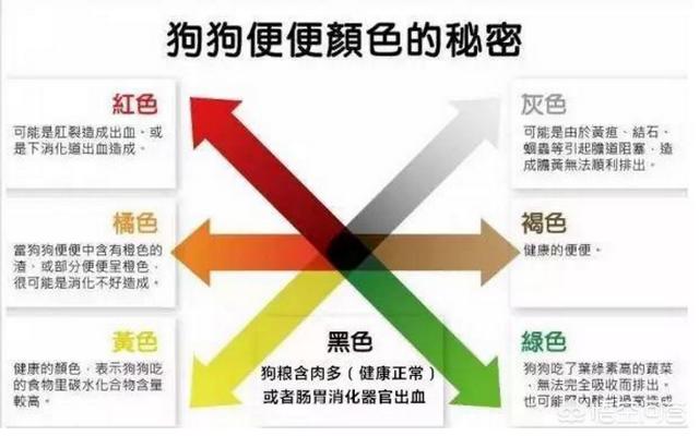 健康的狗狗便便颜色是棕色、褐色或者是黄褐色。当然如果你家狗狗吃了很多绿色蔬菜,那便便偏绿色也是正常的。如果狗狗的粪便带血丝或者有红色的粘液,主人应该马上检查狗狗的是否有肛裂,如果不是的话,就可能是消化道出血引起的,这些情况都要马上送医治疗。