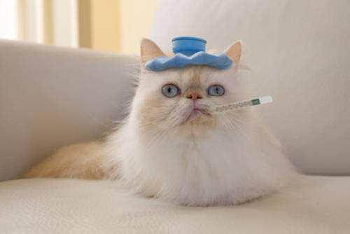 1.当猫咪不是刚刚睡醒,鼻头却很干,耳朵发热的时候,就有可能是发烧了。这个时候我们要给它测体温。猫咪的正常体温为38~39.2℃,如体温在39.2~39.5℃为微热,40.5℃以上为高热。一般来说,猫咪晚上体温稍高,早晨稍低,成猫体温要比幼猫体温稍低,猫咪运动或紧张时,会促使体温暂时升高。