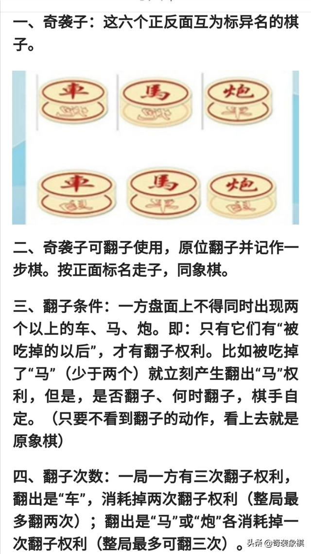 有一种新棋———奇袭象棋,望大家关注。它看上去就是象棋,一盘棋一方有2到3次的翻子权利(下棋形式上与象棋的唯一区别;有时还可能不翻),100种暗面布局,超过象棋5300万倍的变化。目前的技术无法写出自动的电脑对弈程序,所以电脑不会下,而几岁孩童能一两分钟学会。