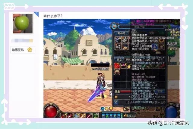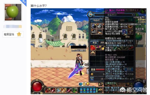近日,一位DNF玩家翻出自己60版本的装备图片,询问这是什么水平!
