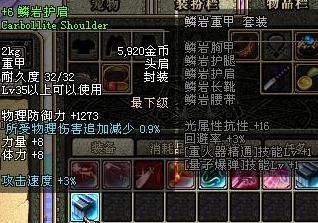 (1)肩膀是鳞岩护肩,没记错的话,是只能图纸制作,加3点攻速,价格昂贵。