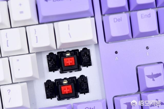 用附送的钢丝拔键器拔掉键帽,可以看到是轴体带背光灯的。这款键盘常规的黑红茶青四种轴体都有,我个人更加喜欢红轴一点,红轴打字指尖飞舞的感觉很爽~