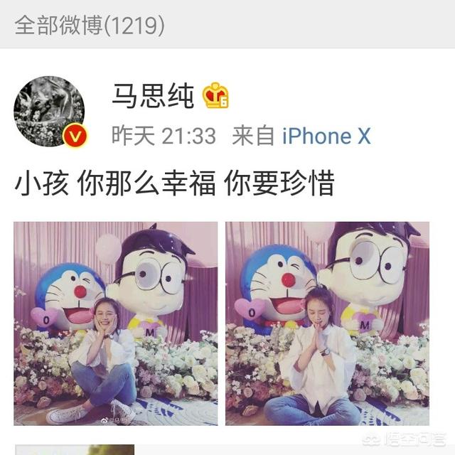3月14日是马思纯的生日,当天马思纯在自己的微博上发了两张庆生照片,并配文“小孩你那么幸福,你要珍惜。”照片中的马思纯一展她招牌的治愈系笑容,但很多眼尖的网友发现马思纯背后的两个玩偶上分别有字幕“O”和“M”,一下就让网友想到了马思纯的男朋友欧豪,两个字母代表的正是他们俩名字的首字母缩写。再到欧豪的微博一看,果然为女友送上了生日祝福。